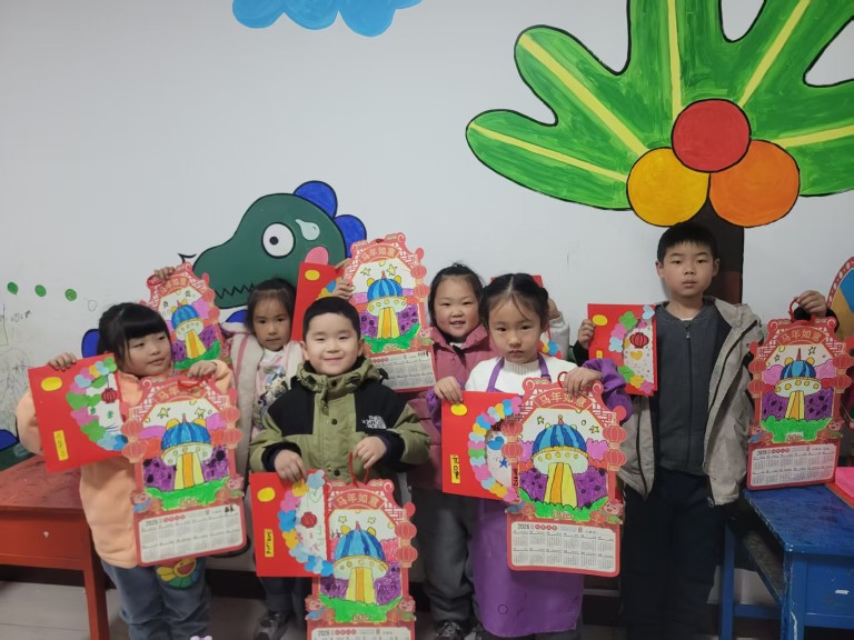 美术部的孩子们用灵巧的双手制作立体贺卡,将新年的美好祝愿融入作品中。彩色卡纸、丝带、亮片在他们手中变成了一张张充满创意的贺卡。活动现场,孩子们手持自己的作品合影,脸上洋溢着成就感和喜悦,这些贺卡不仅是礼物,更是他们心意的传递。